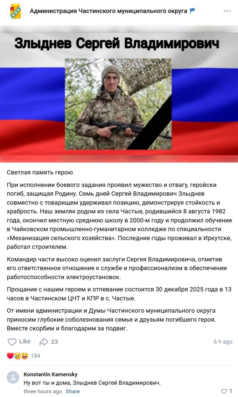 Дата сообщения о гибели: