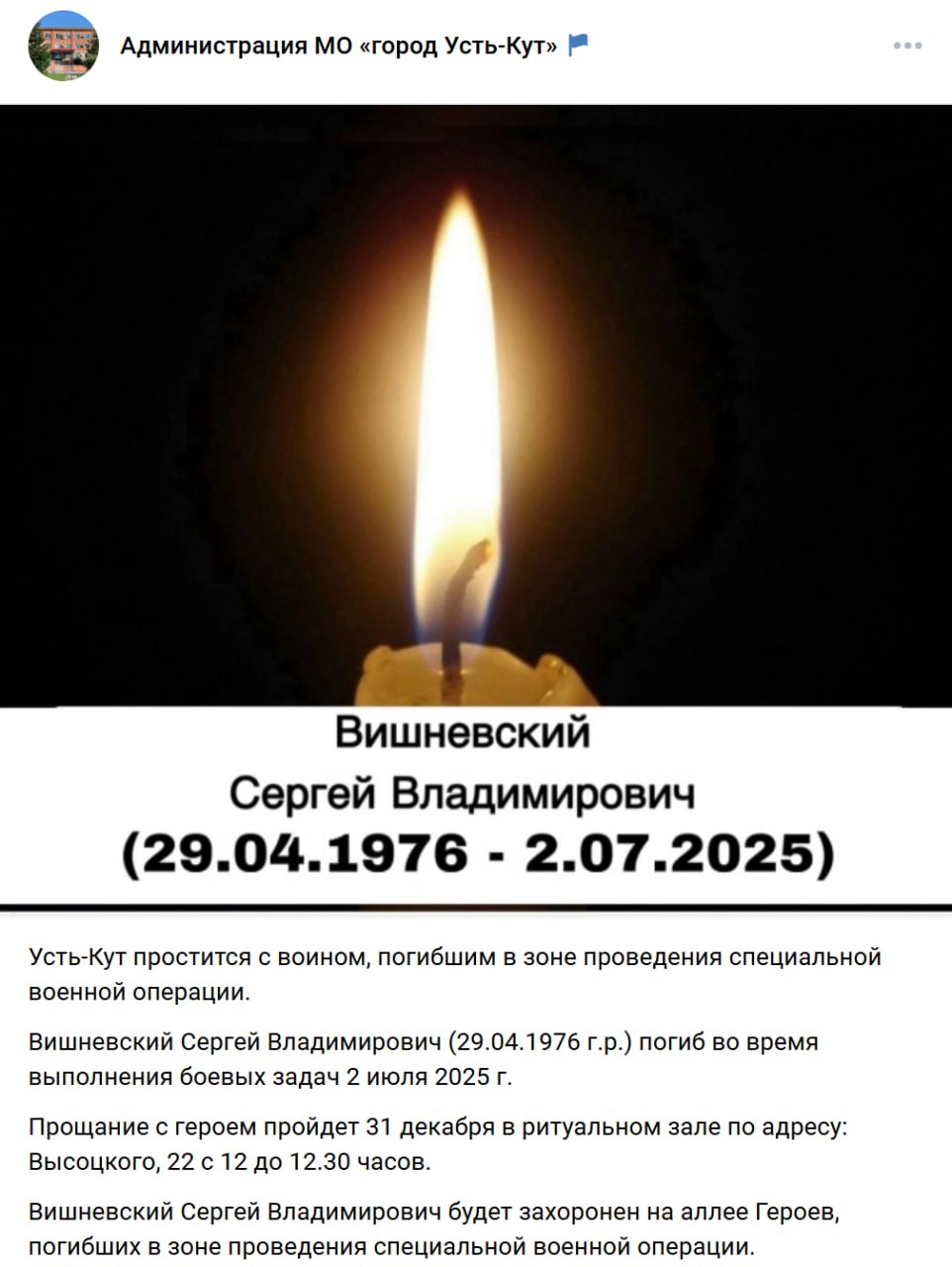 Дата сообщения о гибели: