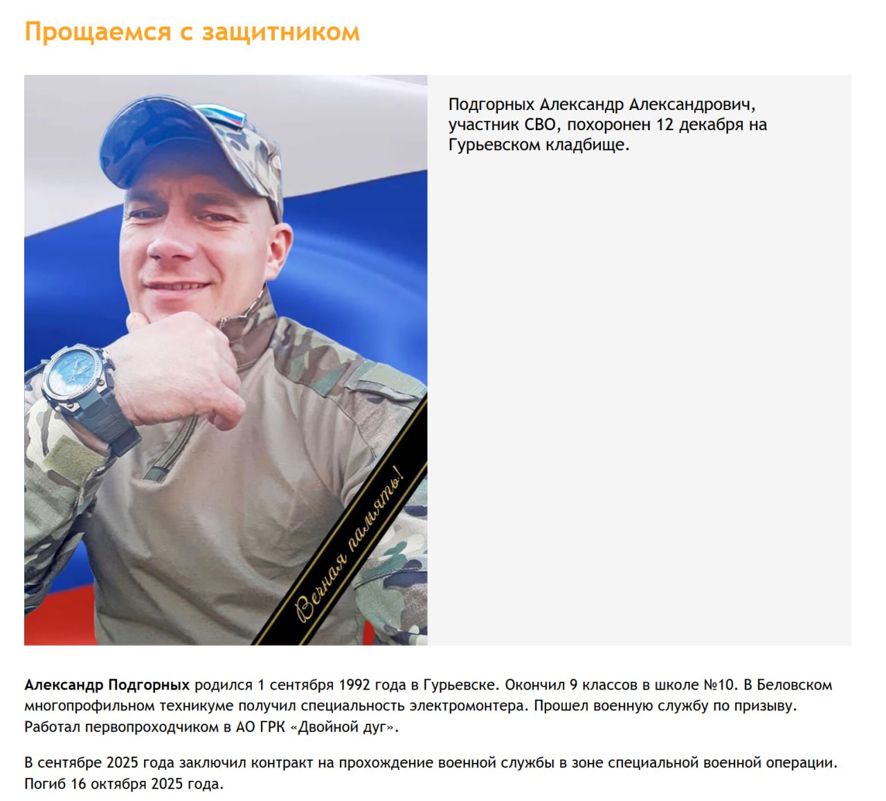 Дата сообщения о гибели: