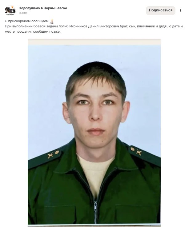 Скриншот сообщения о гибели