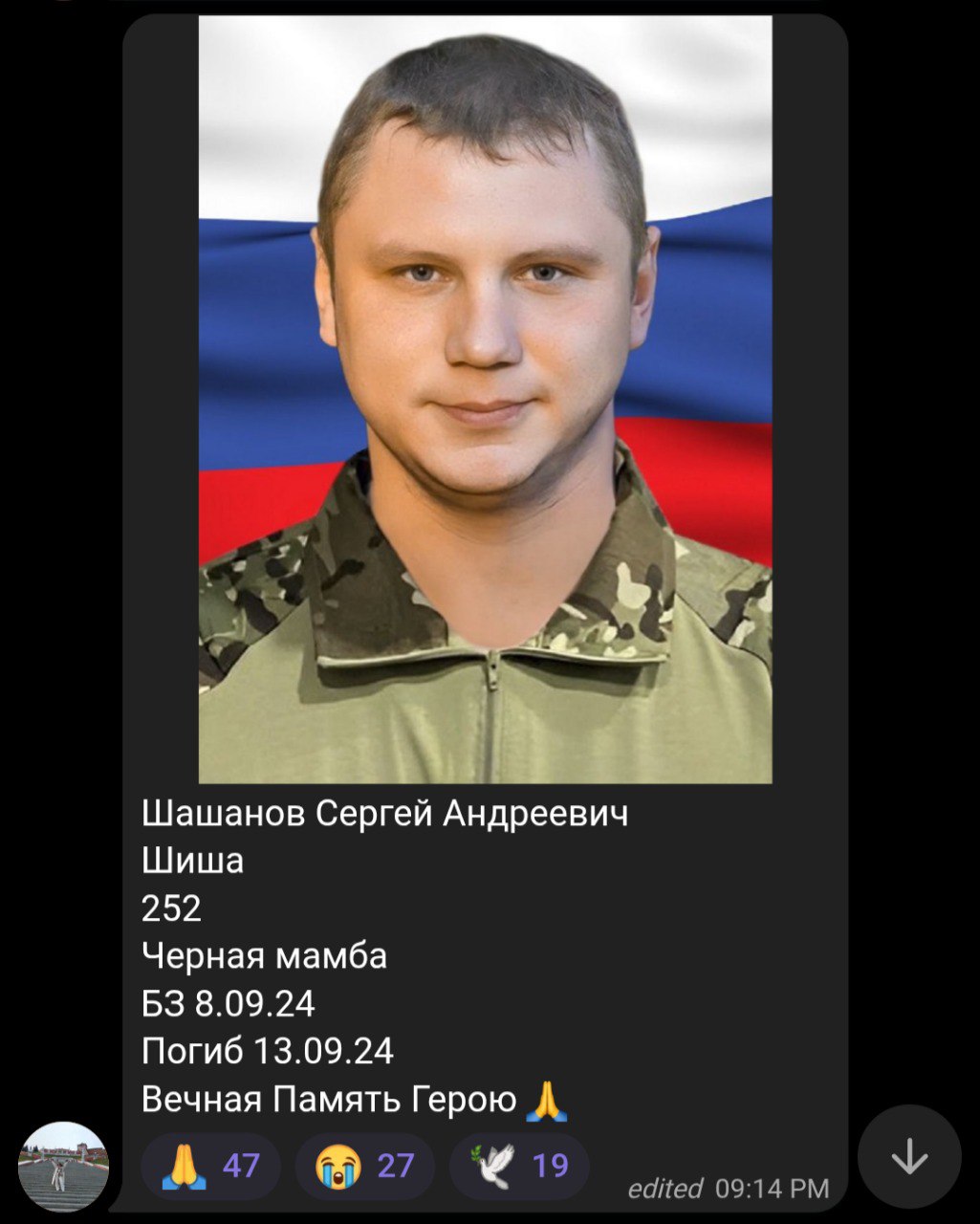Дата сообщения о гибели: