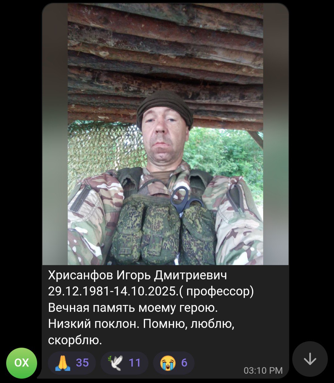 Дата сообщения о гибели: