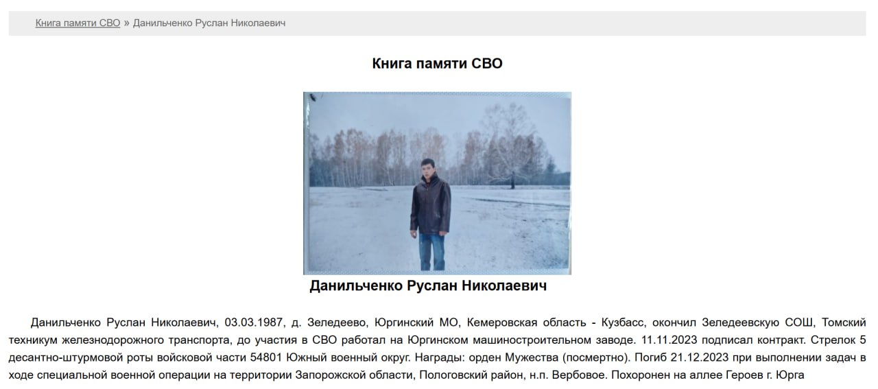 Подробные данные по данному погибшему