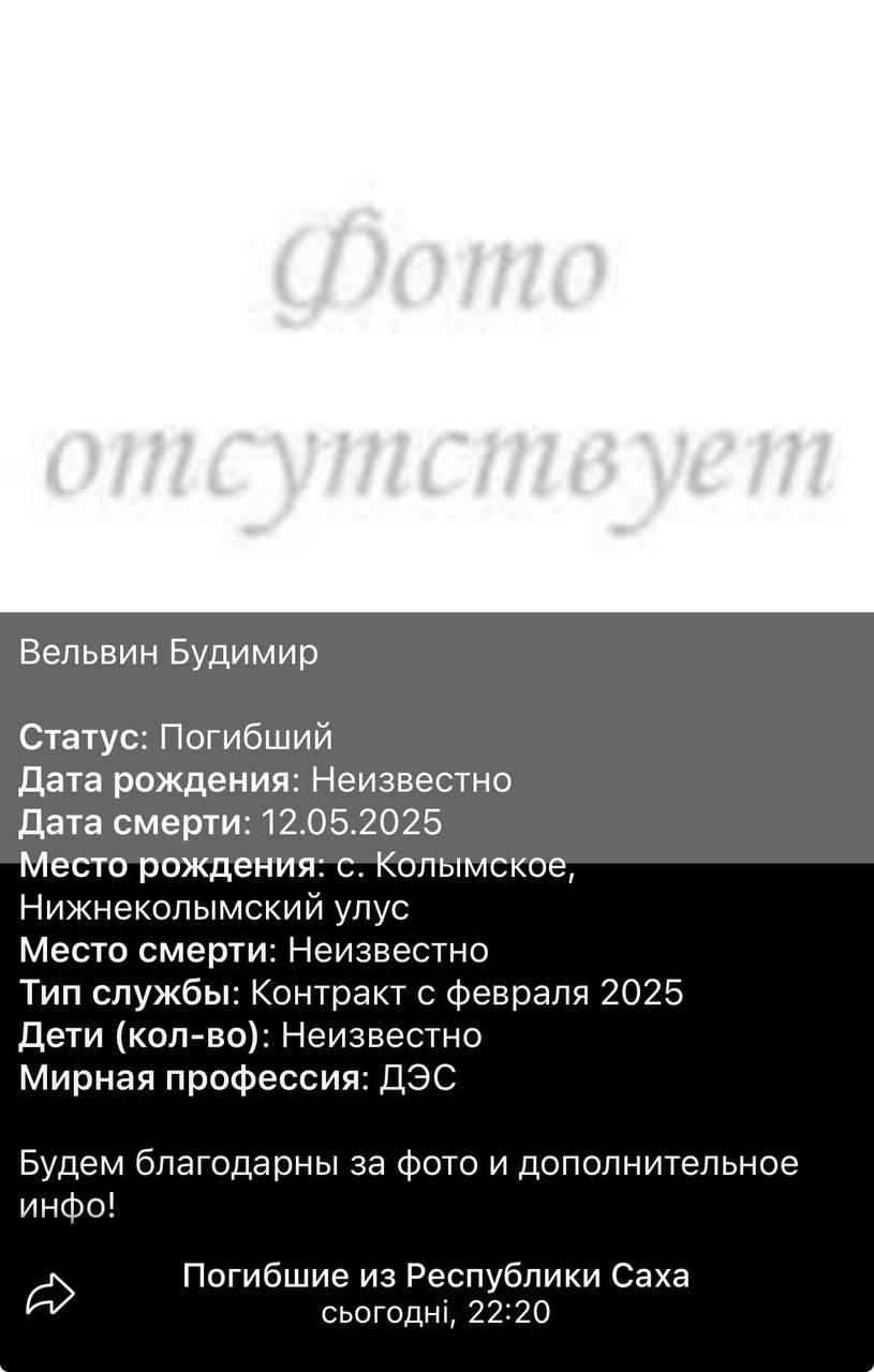 Статус: Подробные данные по данному погибшему получены и обрабатываются.