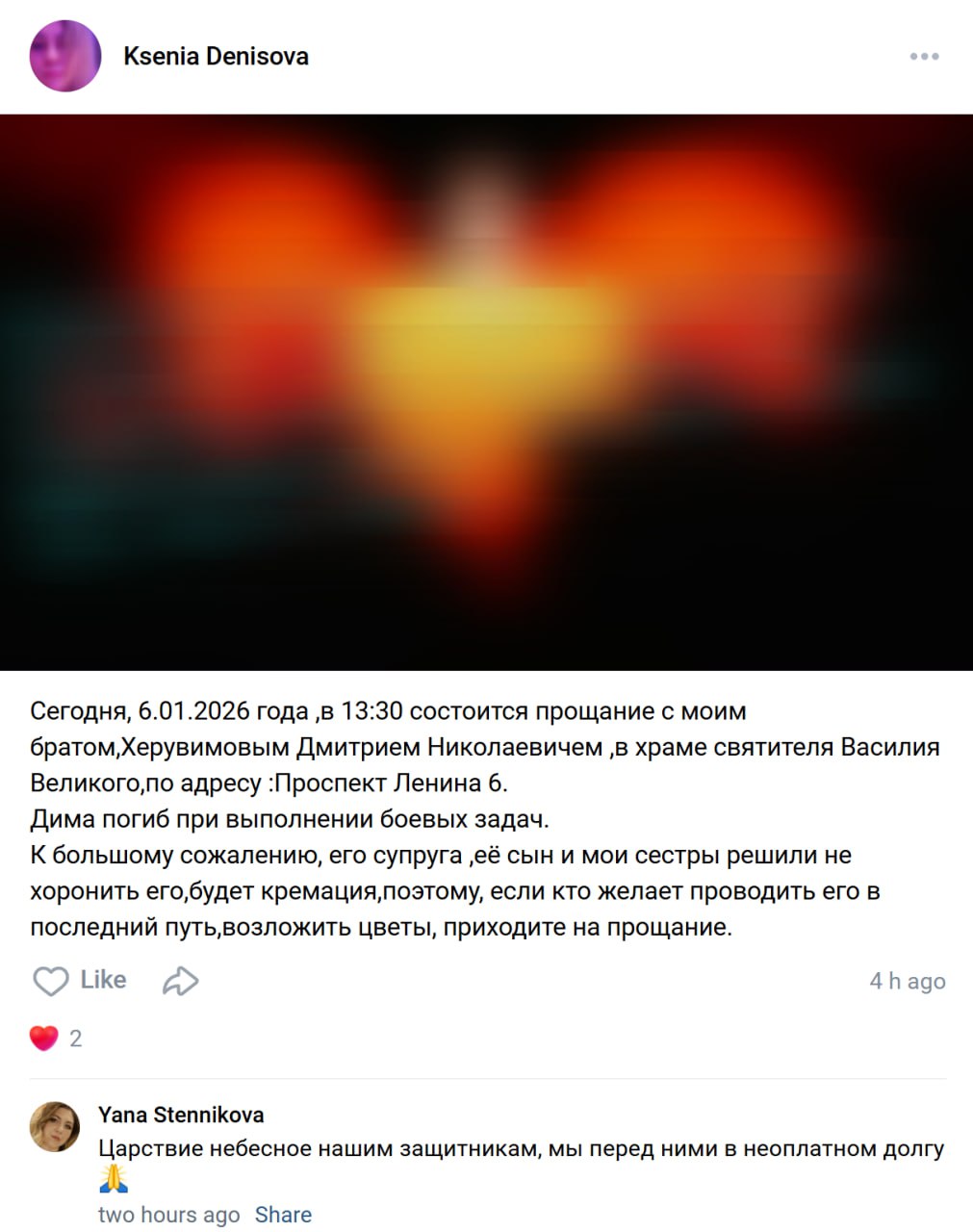 Дата сообщения о гибели: