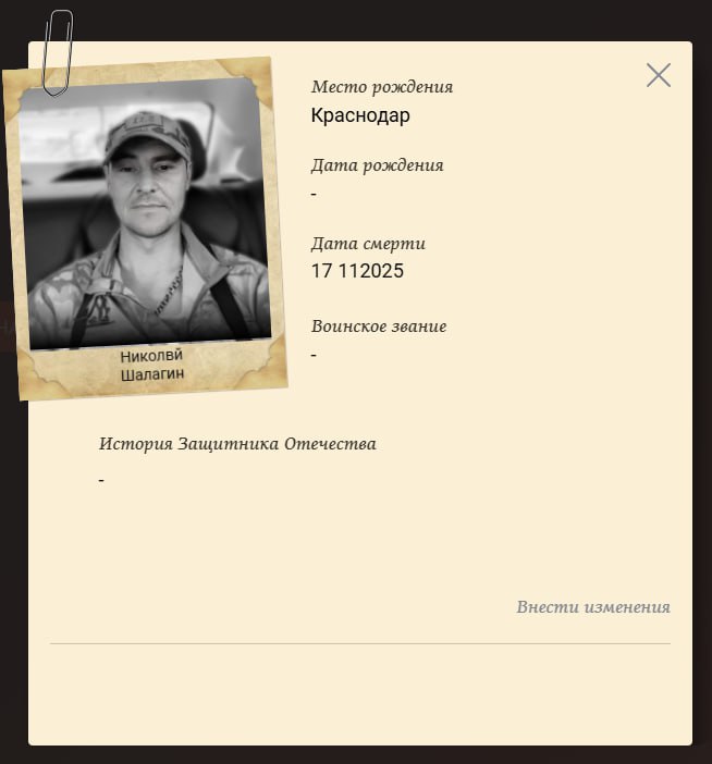 Статус: Подробные данные по данному погибшему получены и обрабатываются.
