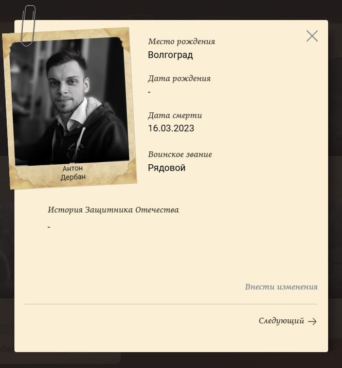 Статус: Подробные данные по данному погибшему получены и обрабатываются.