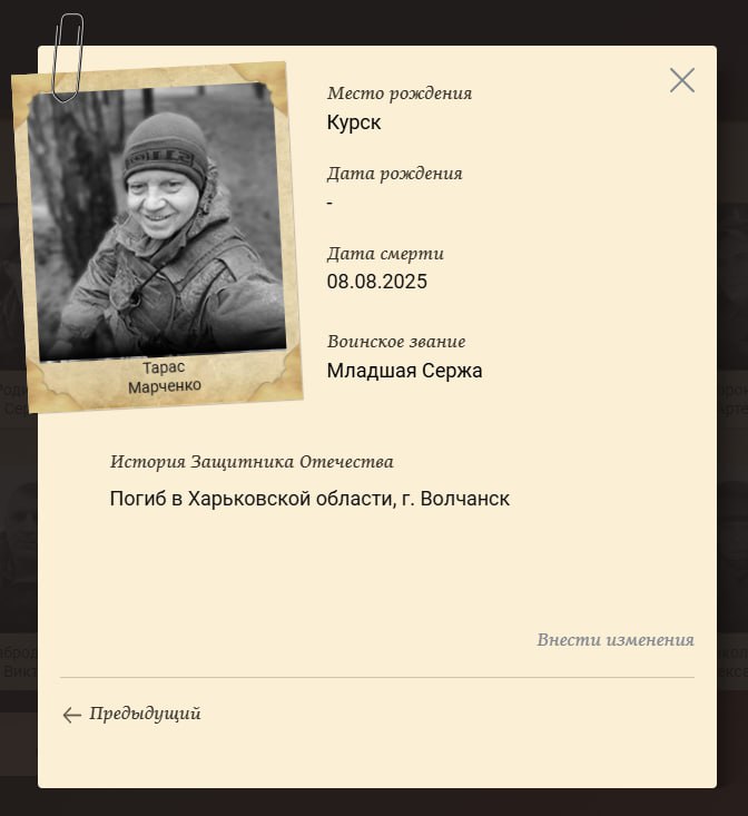 Статус: Подробные данные по данному погибшему получены и обрабатываются.