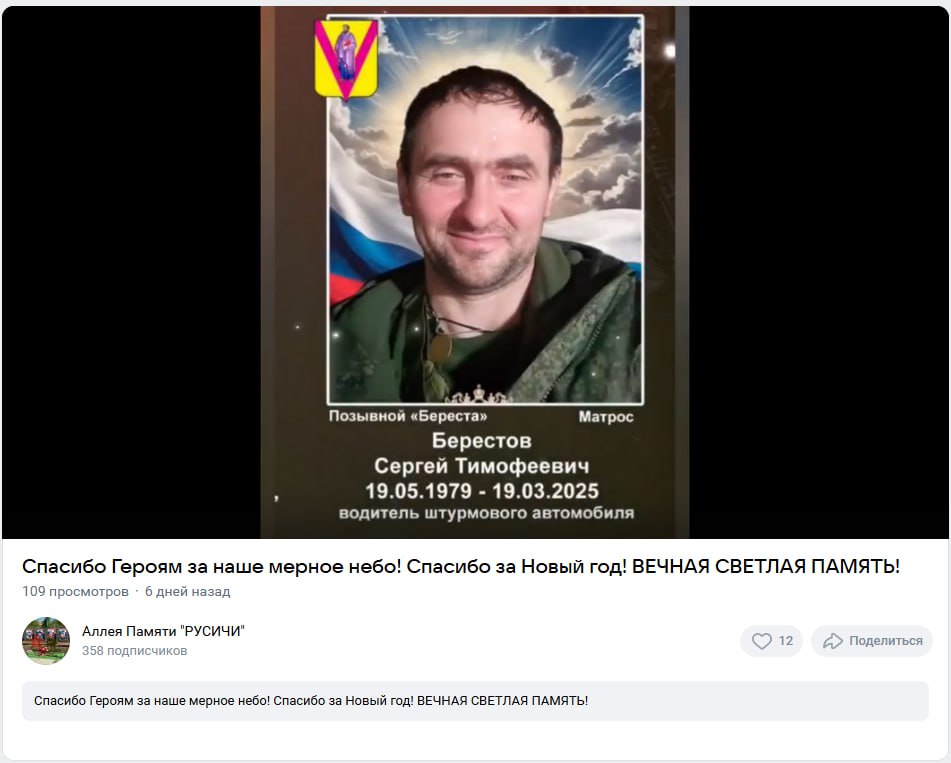 Дата сообщения о гибели: