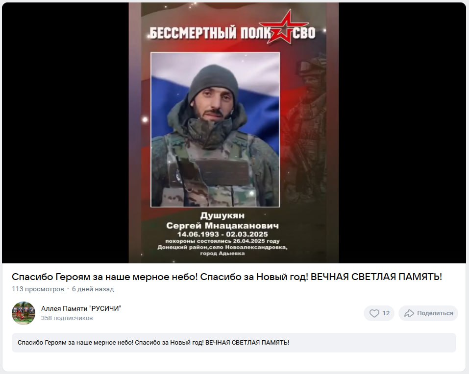 Дата сообщения о гибели: