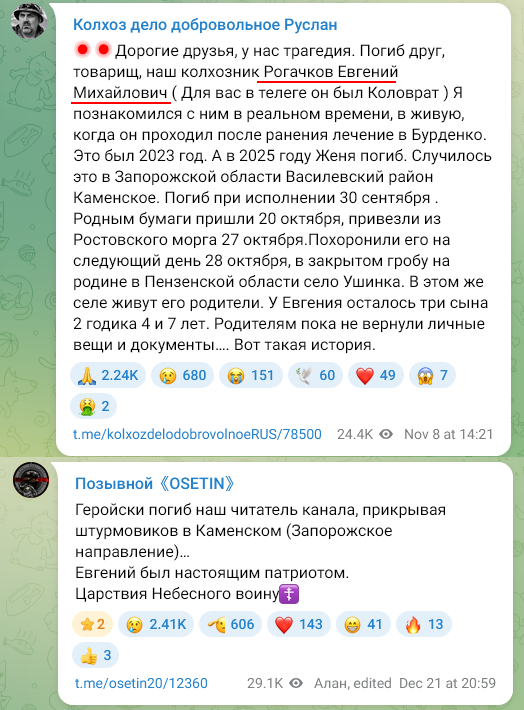 Скриншот сообщения о гибели