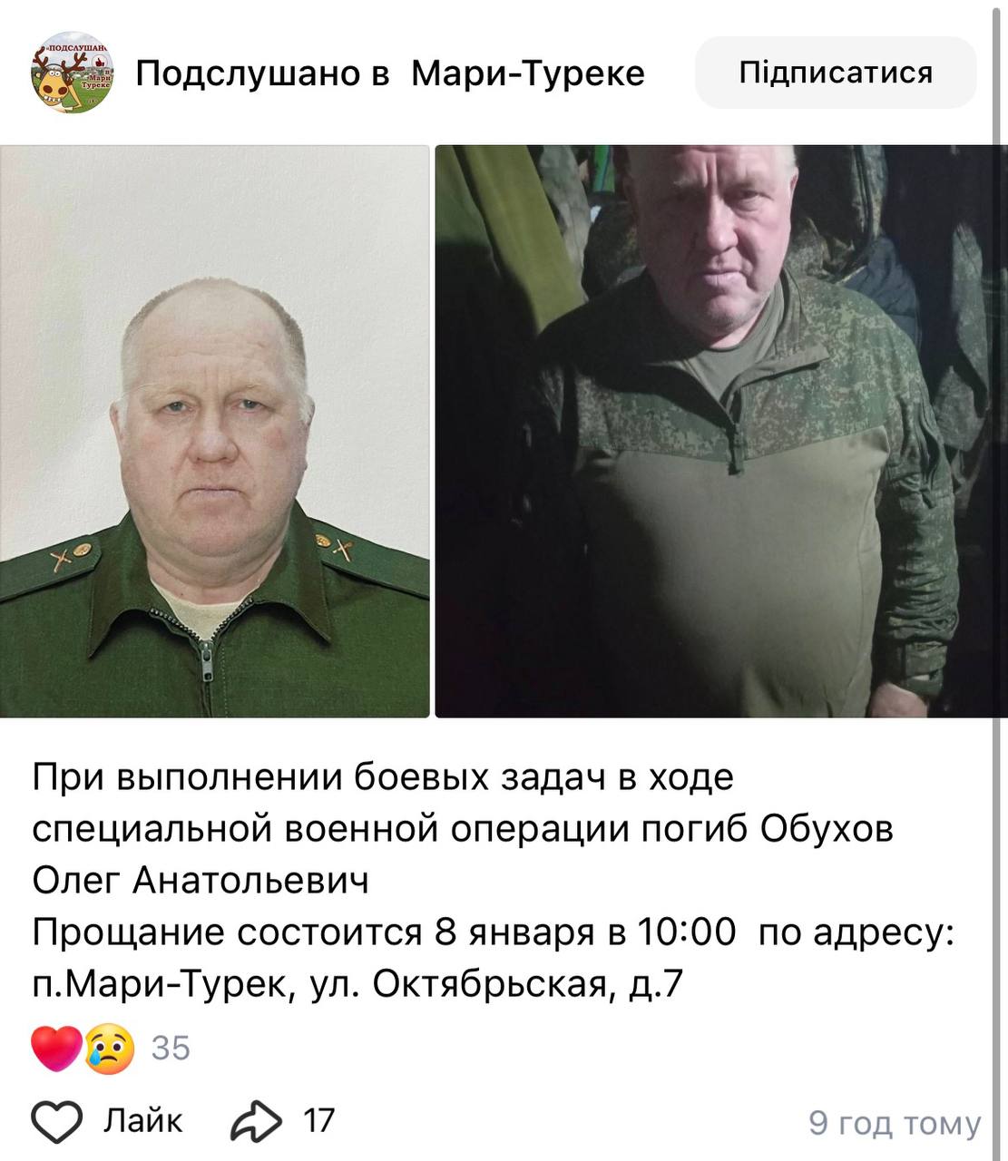 Дата сообщения о гибели: