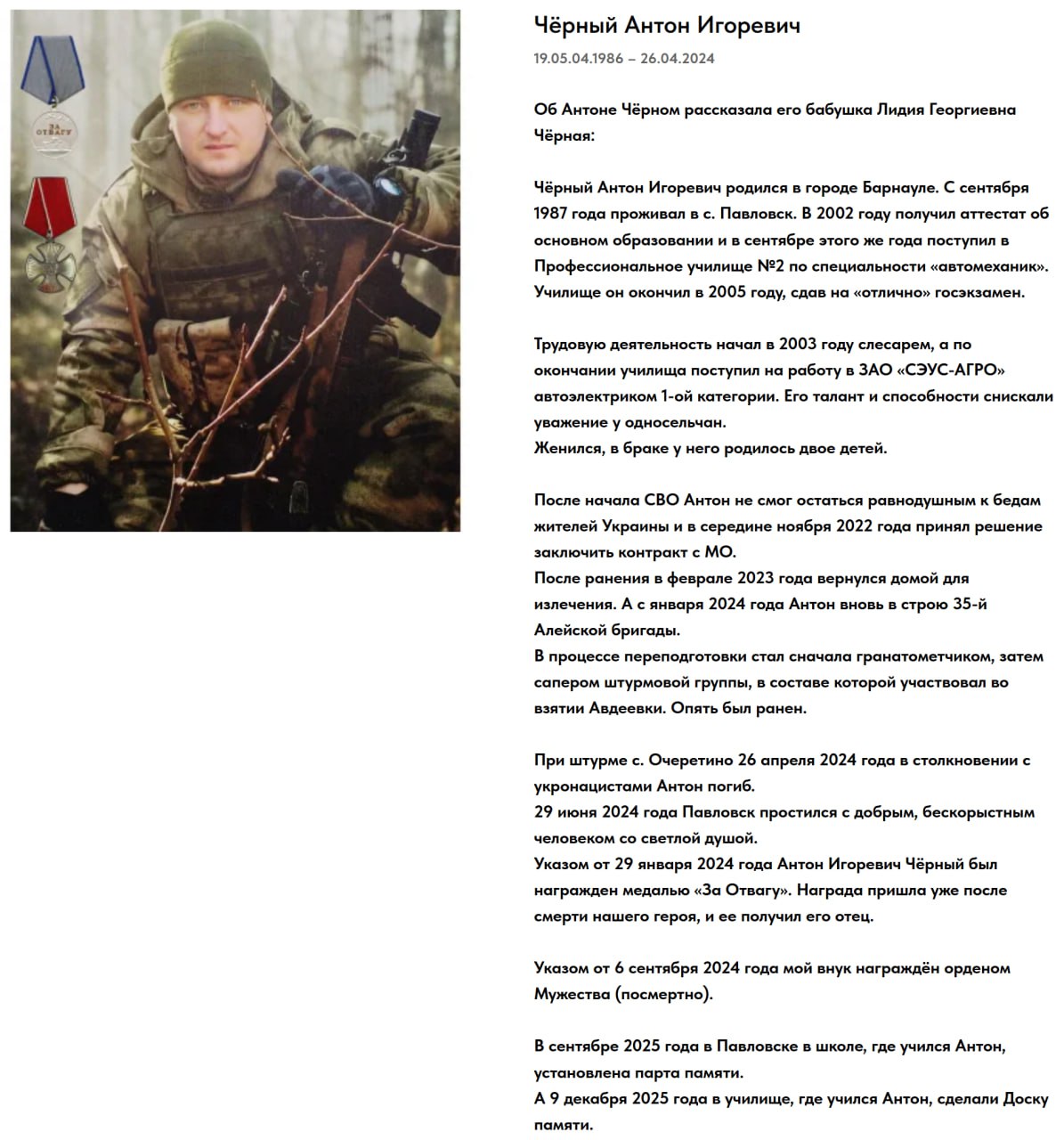 Подробные данные по данному погибшему