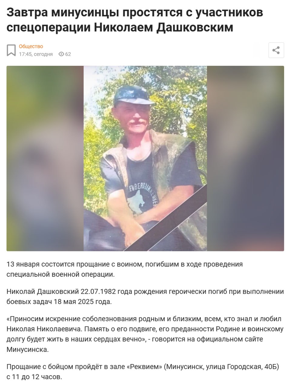 Дата сообщения о гибели: