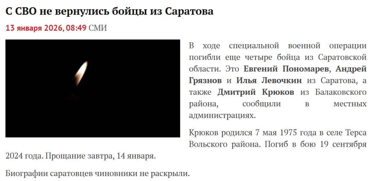 Дата сообщения о гибели: 13.01.2026