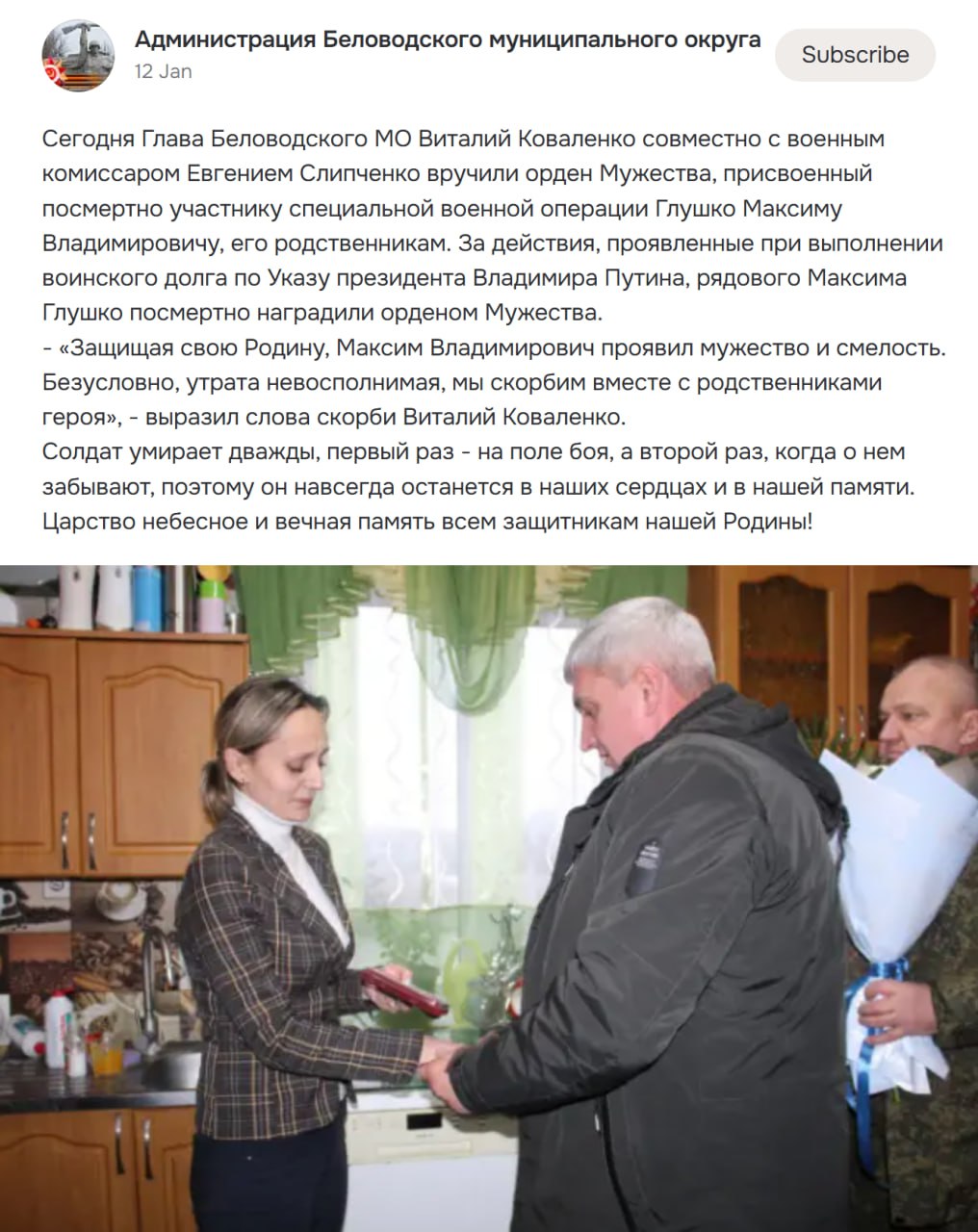 Дата сообщения о гибели: