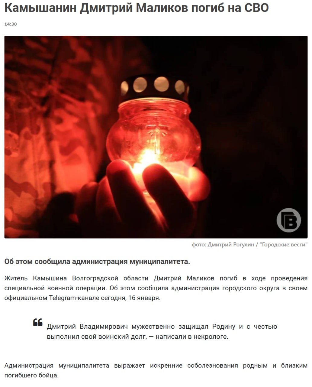 Дата сообщения о гибели: