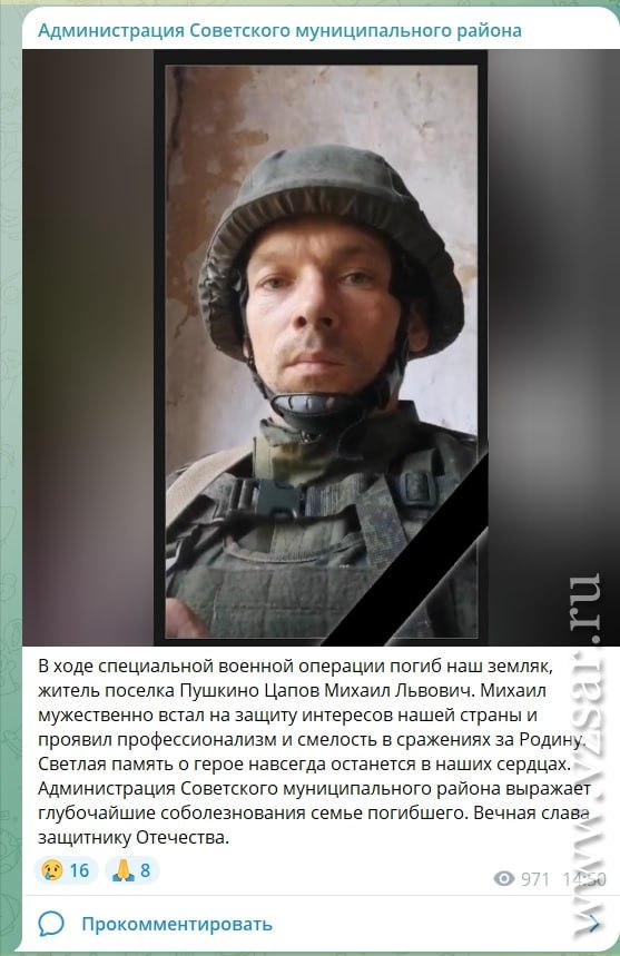 Дата сообщения о гибели: