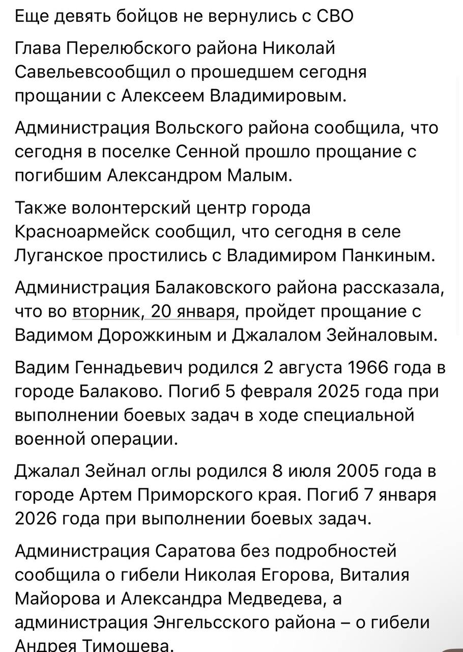 Дата сообщения о гибели: 18.01.2026