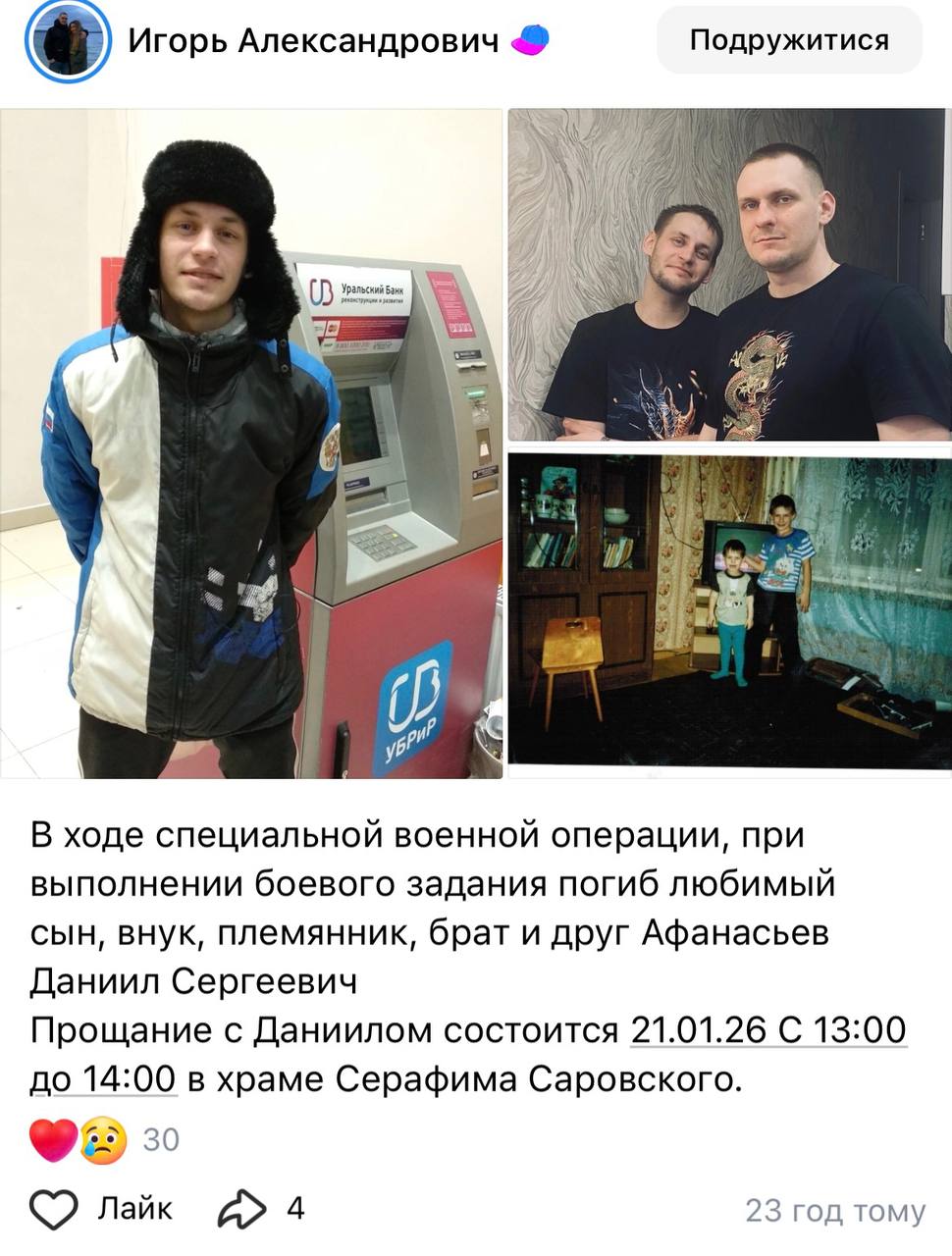 Дата сообщения о гибели: