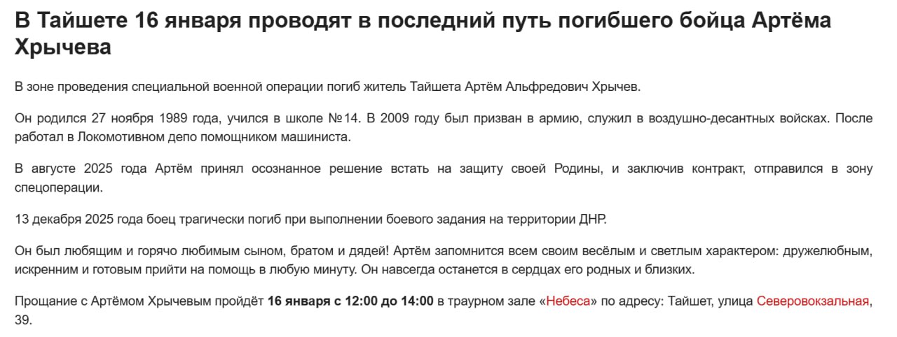 Дата сообщения о гибели: