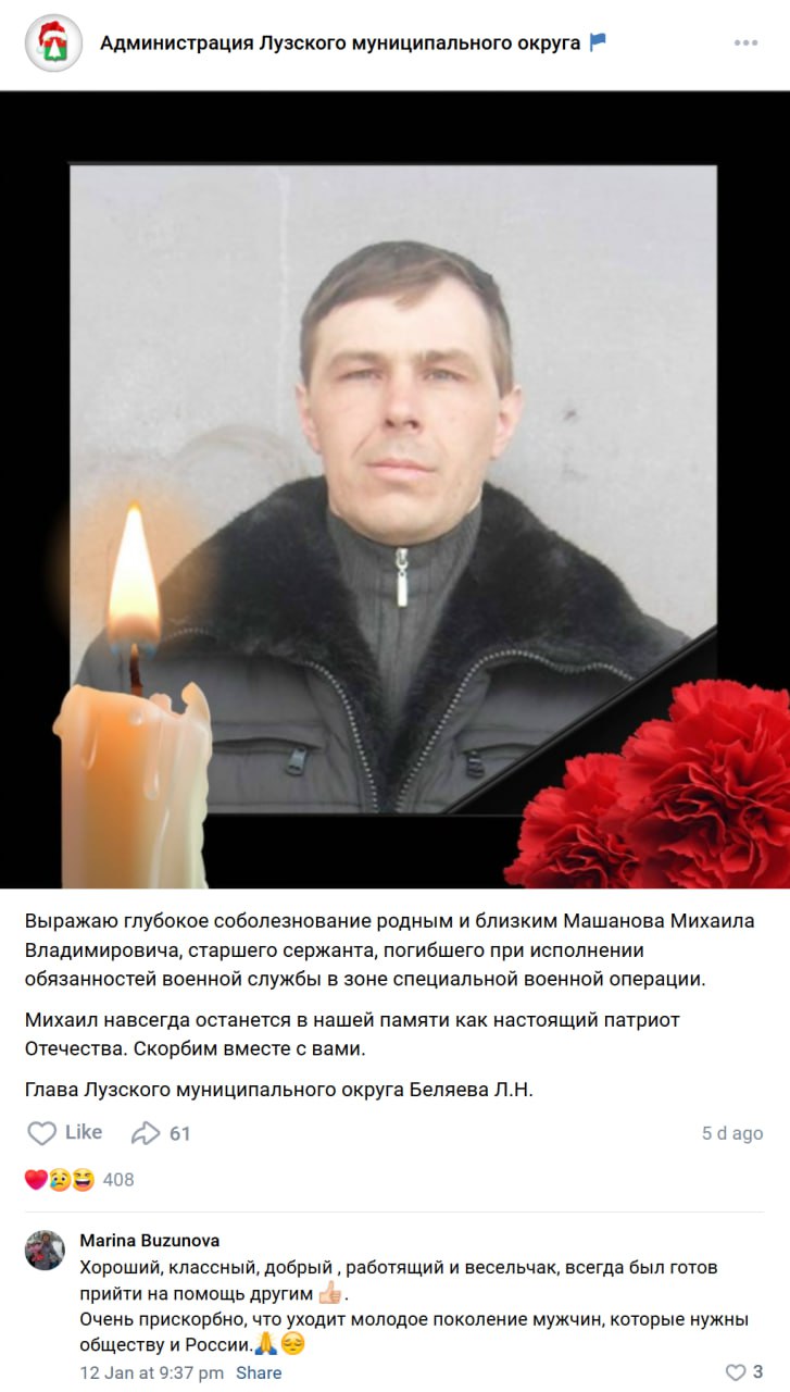 Скриншот сообщения о гибели