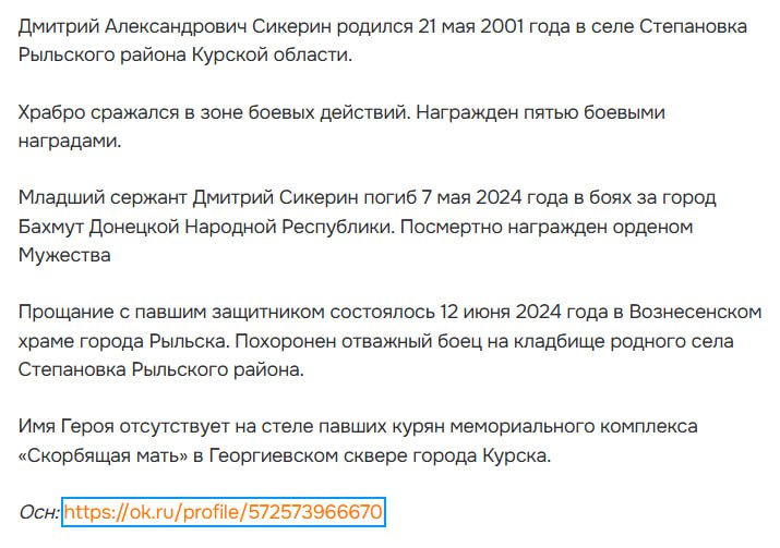 Дата сообщения о гибели:
