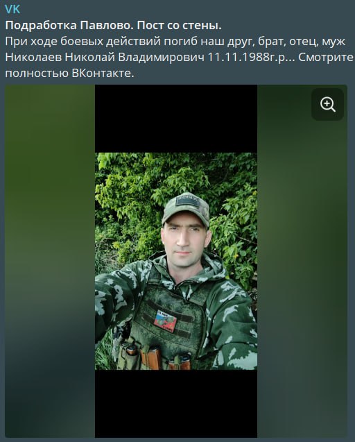 Скриншот сообщения о гибели