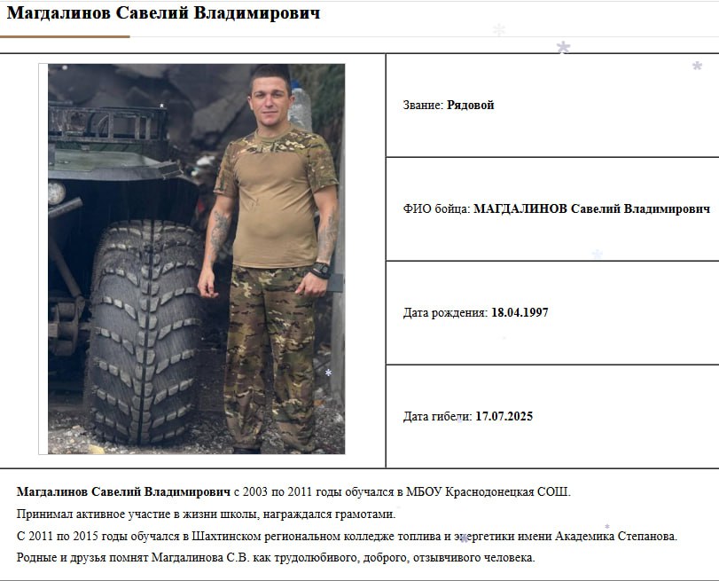 Подробные данные по данному погибшему