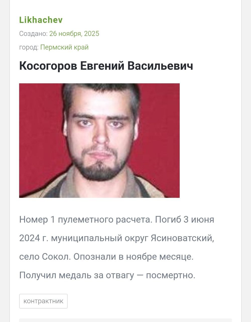 Подробные данные по данному погибшему