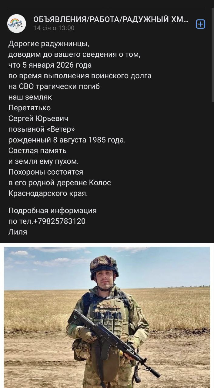 Дата сообщения о гибели: