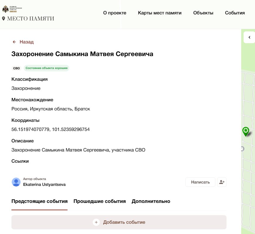 Подробные данные по данному погибшему