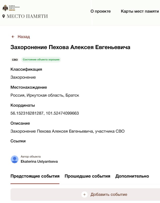 Подробные данные по данному погибшему