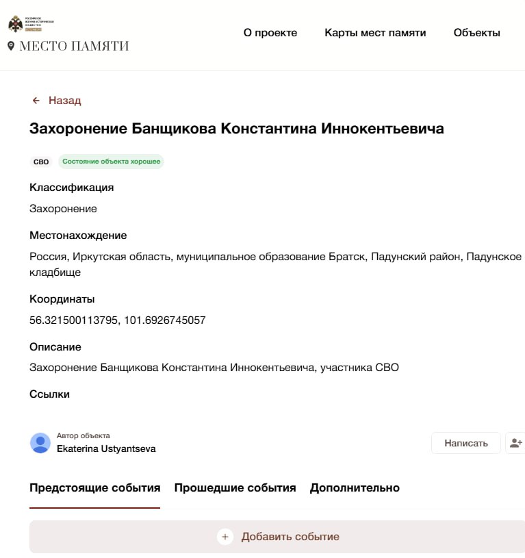 Подробные данные по данному погибшему