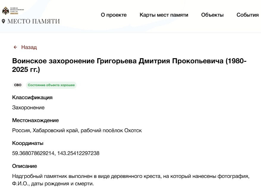 Дата сообщения о гибели: