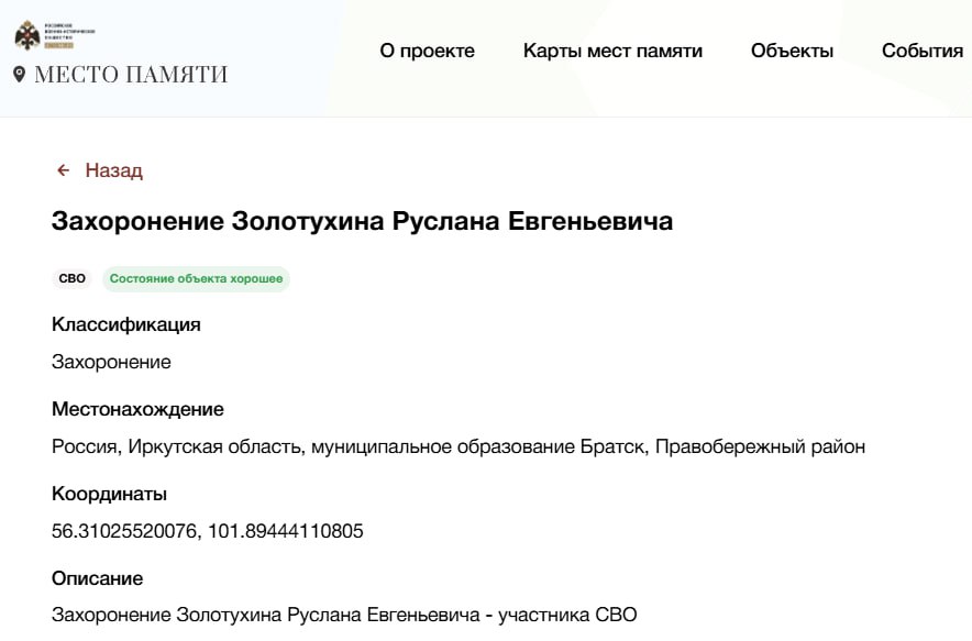 Подробные данные по данному погибшему