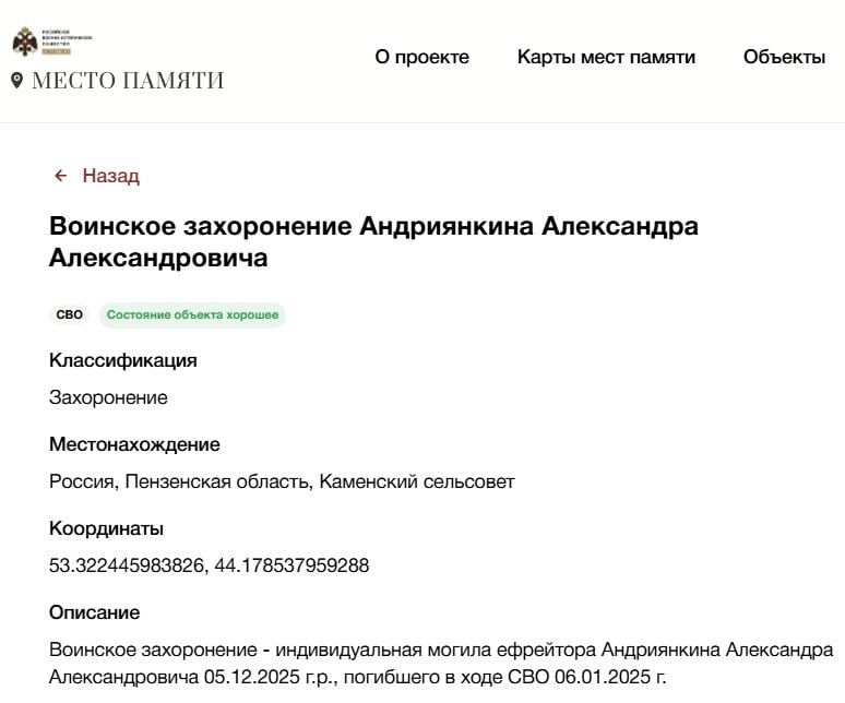 Подробные данные по данному погибшему