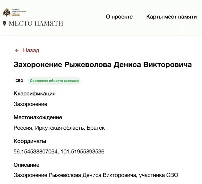 Подробные данные по данному погибшему