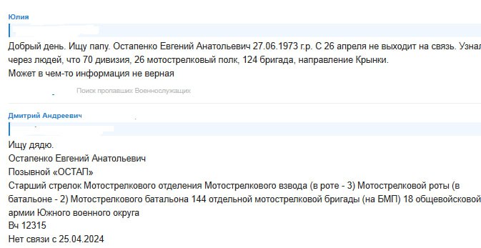 Дата сообщения о гибели: