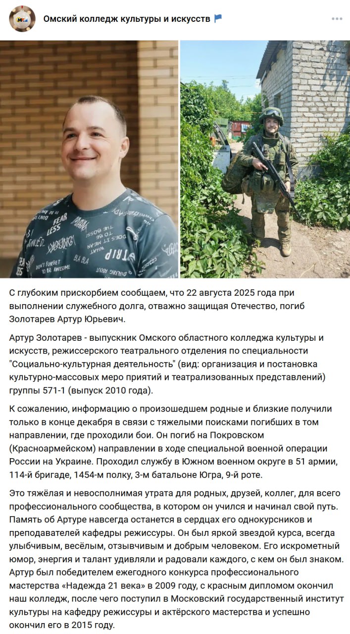 Дата сообщения о гибели: