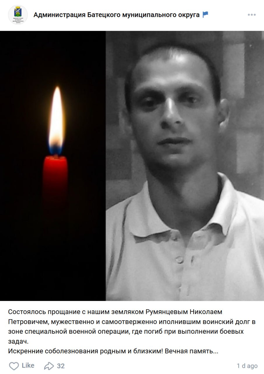 Дата сообщения о гибели: