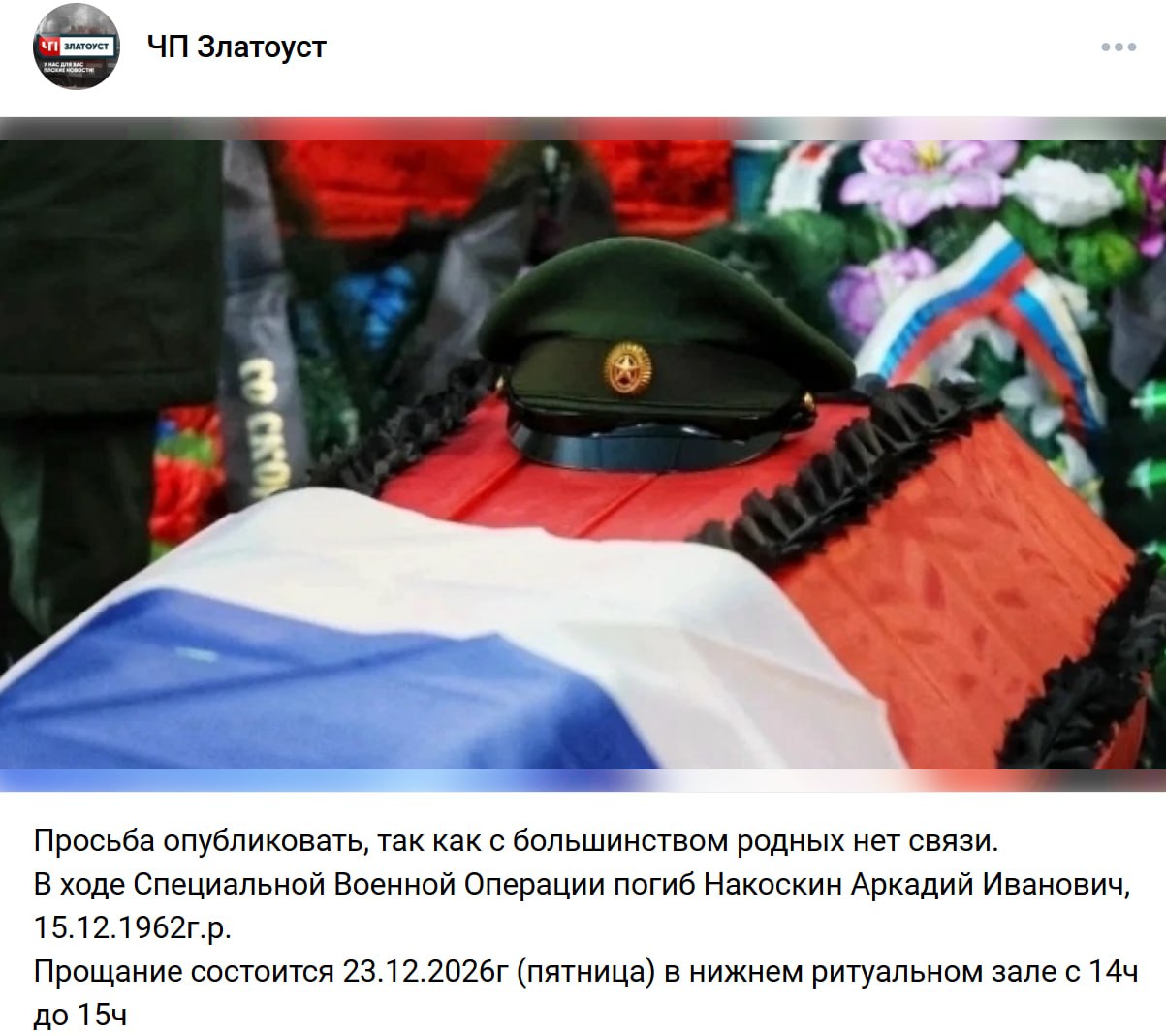 Дата сообщения о гибели: