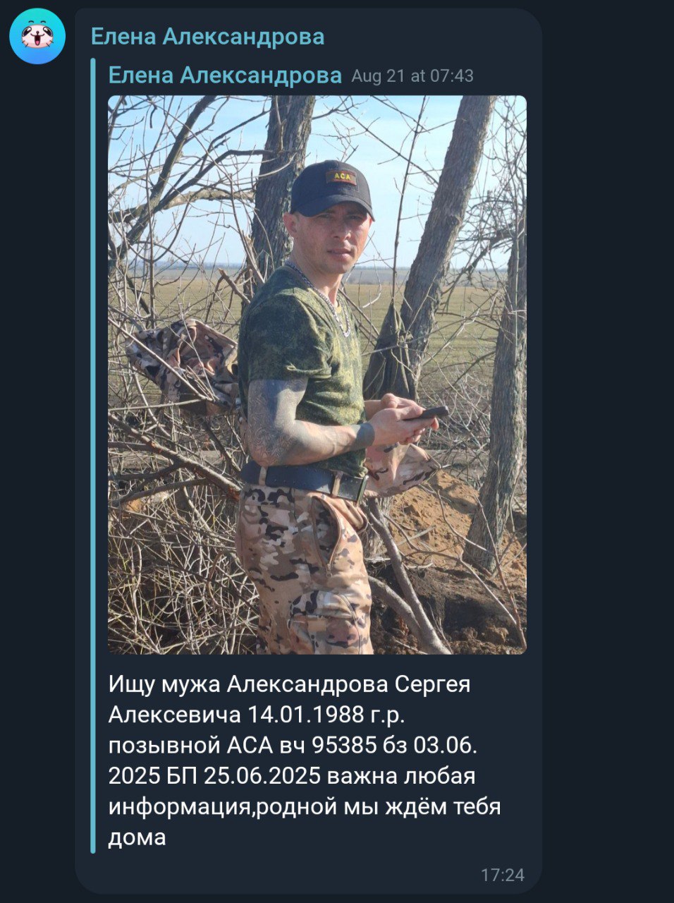 Скриншот сообщения о гибели
