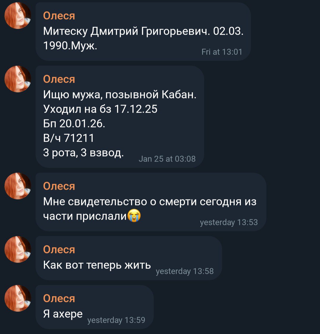Дата сообщения о гибели: