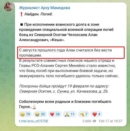 Скриншот сообщения о гибели