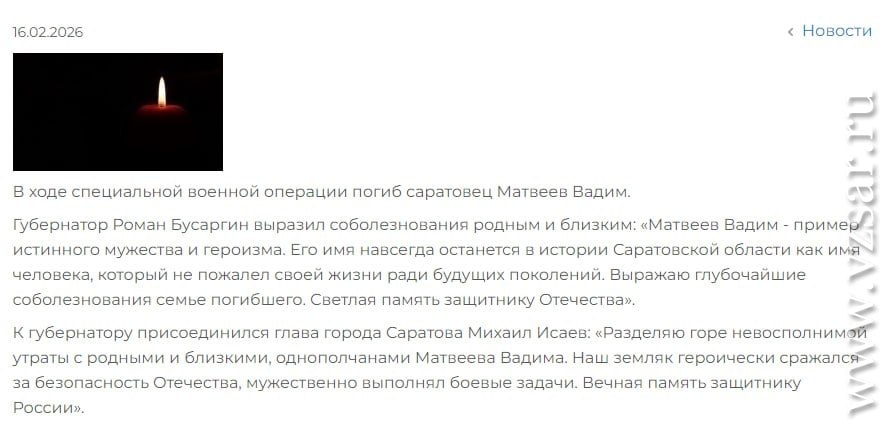 Дата сообщения о гибели: 18.02.2026