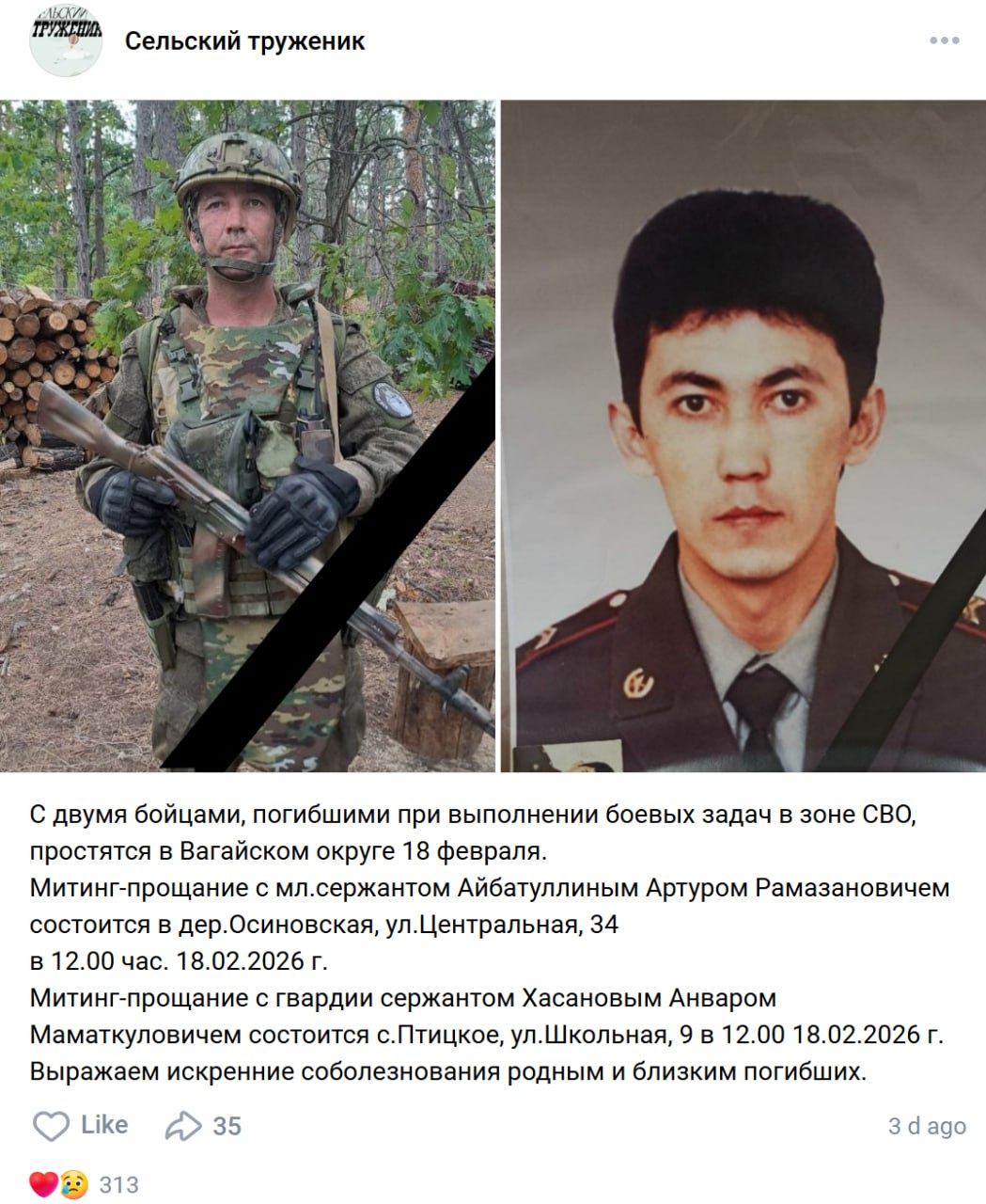 Дата сообщения о гибели: