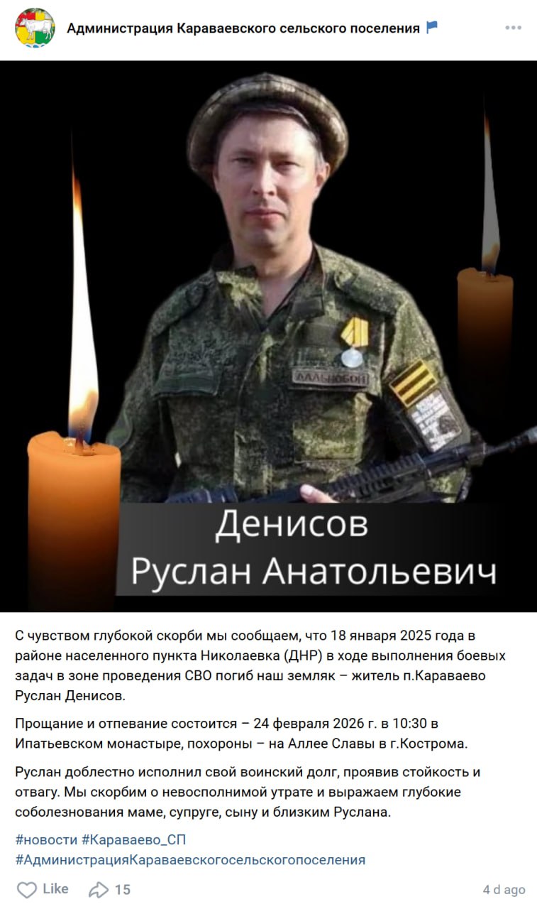 Дата сообщения о гибели: