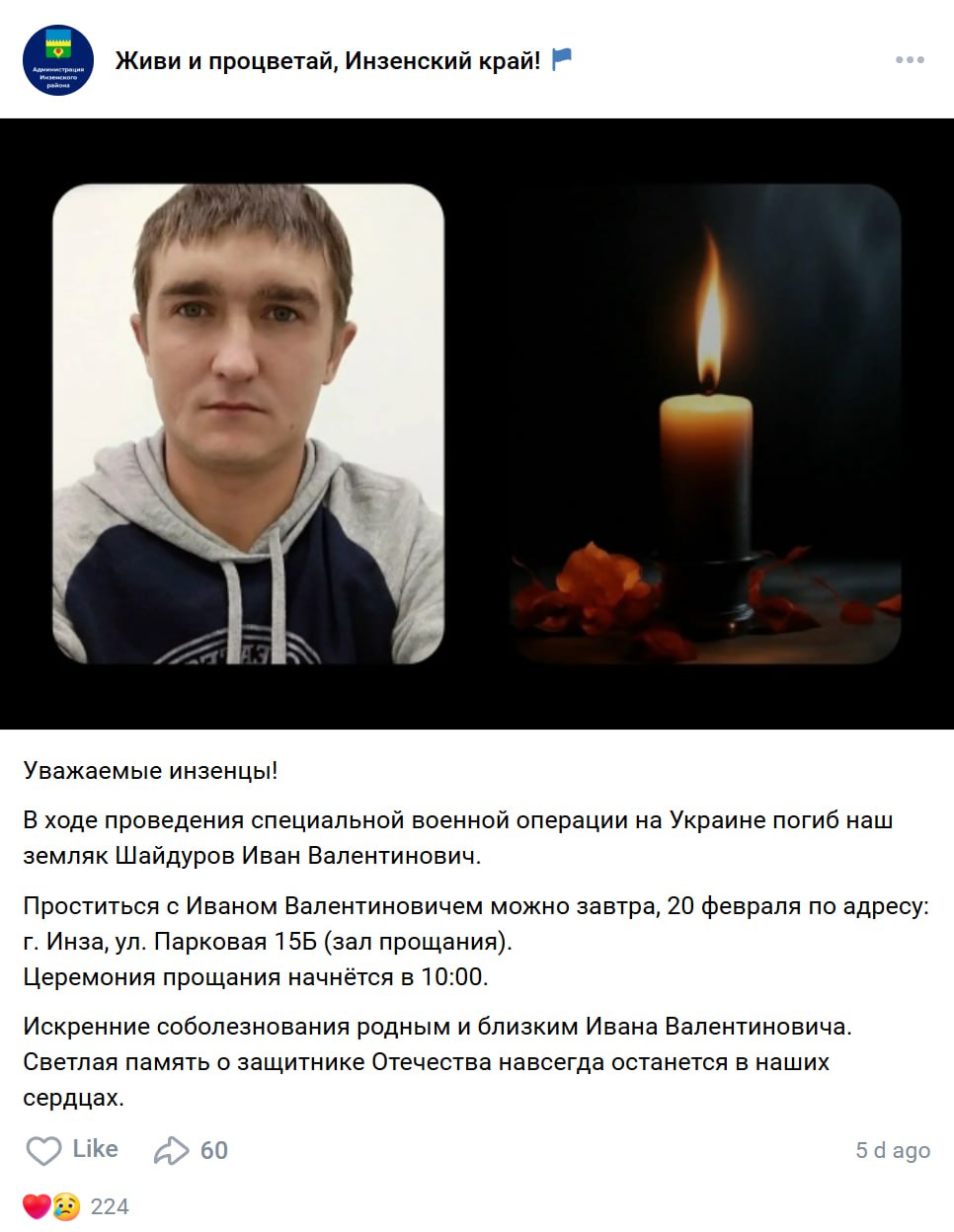 Дата сообщения о гибели: