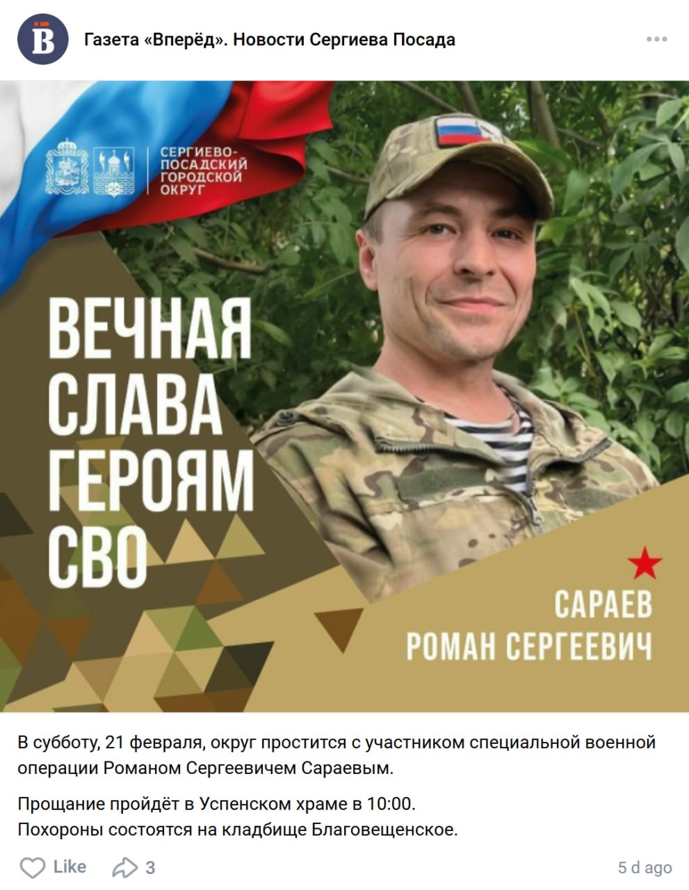 Дата сообщения о гибели: